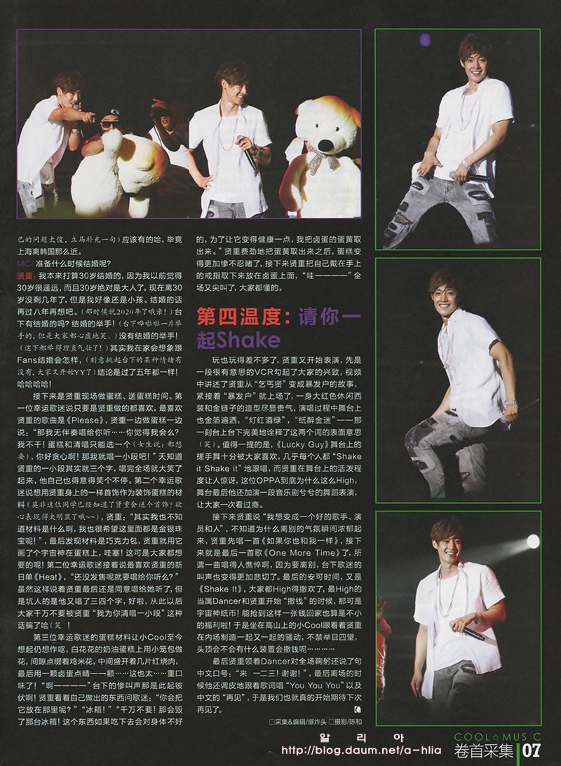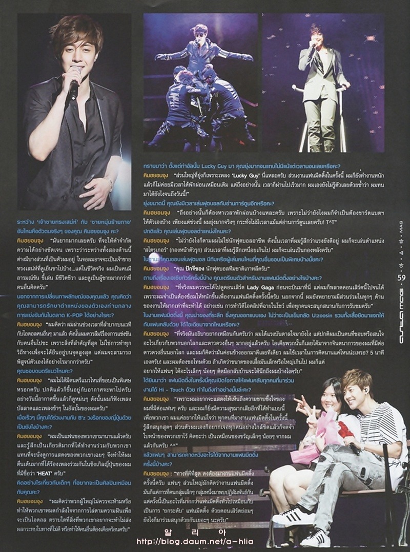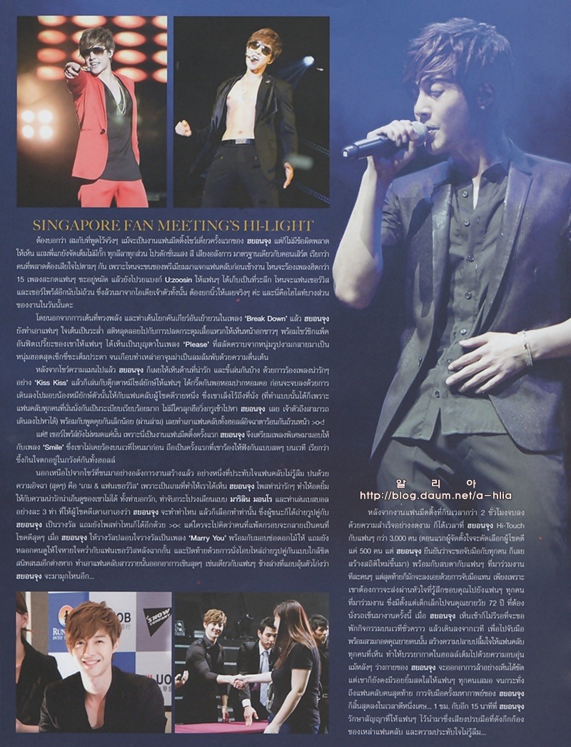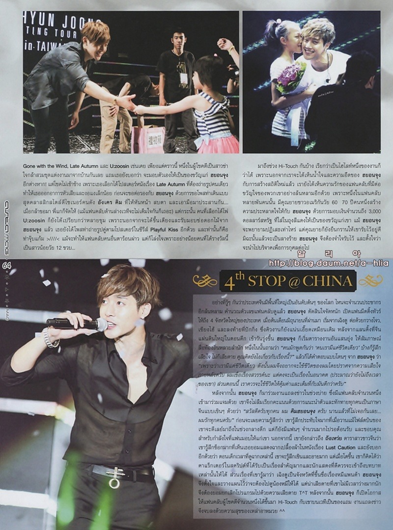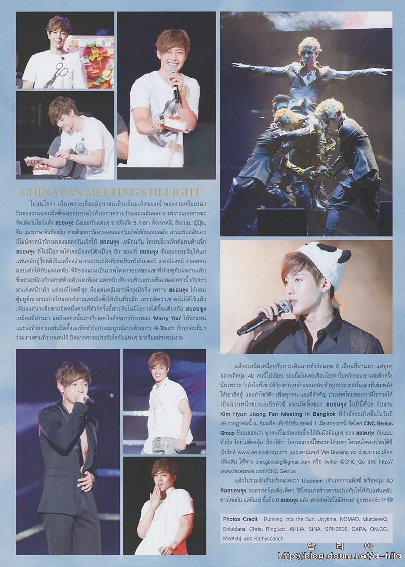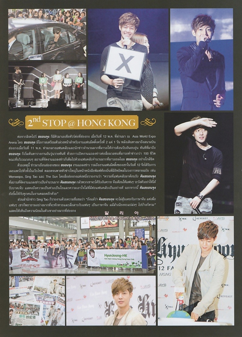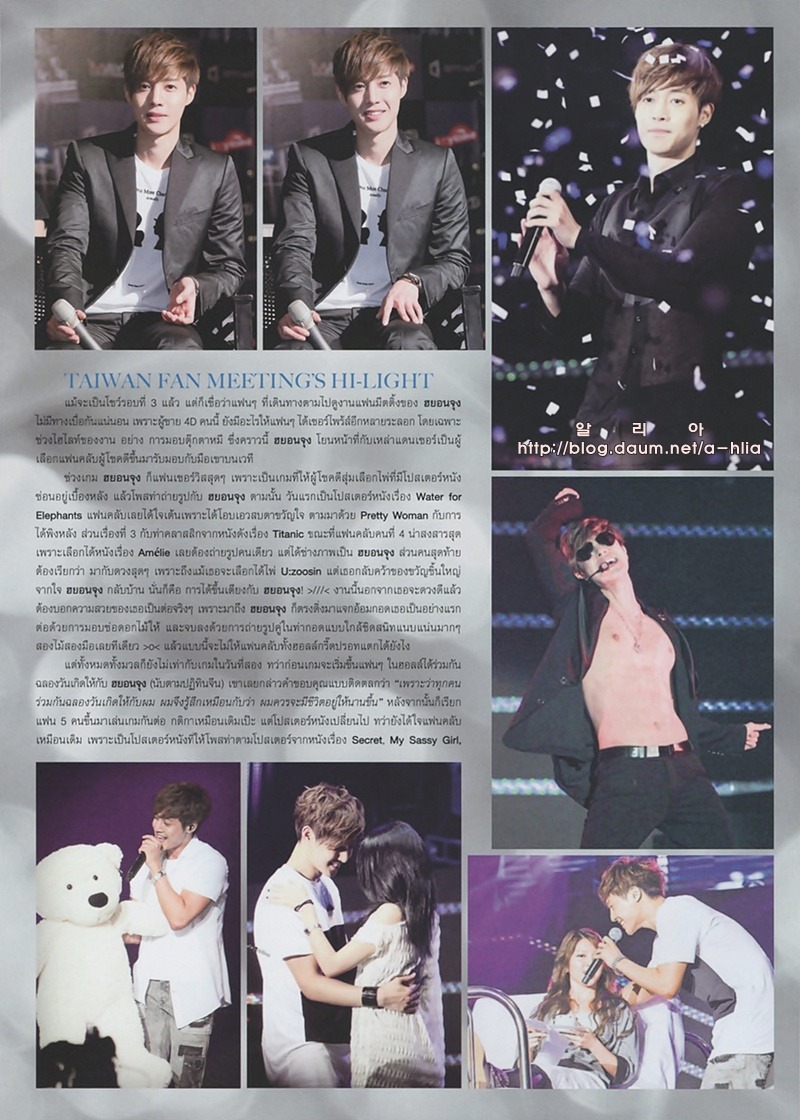 На доске одного из интернет-сообществ недавно были опубликованы сканированные копии журнала под заголовком ‘Ким Хён Чжун в Тайском журнале’. Фотографии его встречи с фанатами в Бангкоке 29 июля и фотографии выступления прекрасно передают эмоциональный накал происходящего на сцене. Десятки включенных фотографий демонстрируют фотогеничность звезды в любом ракурсе.