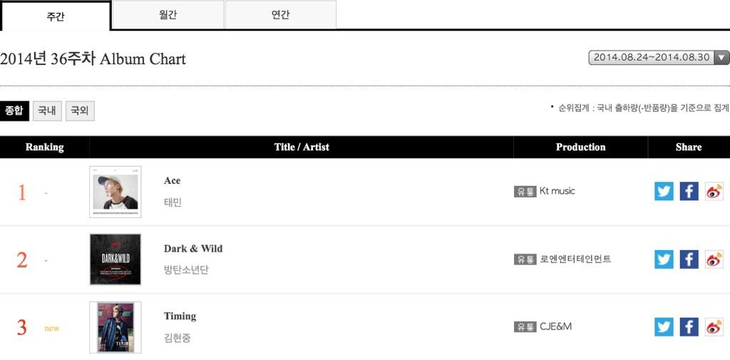 Еженедельный чарт Gaon (2014.08.24 ~ 2014.08.30) No. 3: Ким Хен Джун – TIMING